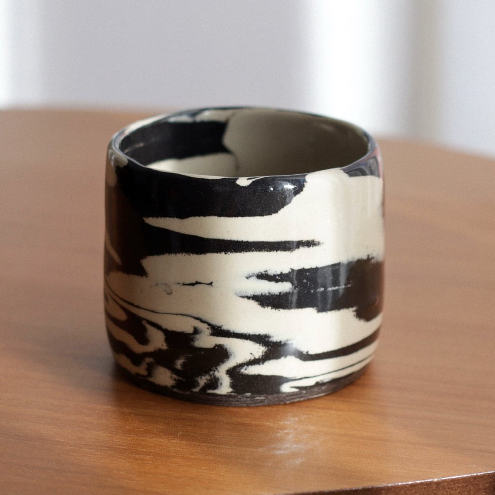 Marmi cup is entirely hand built by mixing two different stoneware clays in order to achieve beautiful marble effect. Every surface is sanded by hand and glazed with a transparent glaze. This cup is great for café latte or matcha.