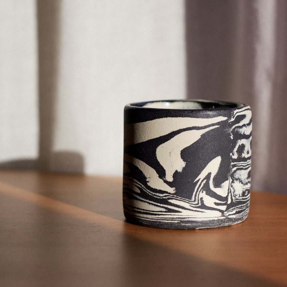 Marmi cup is entirely hand built by mixing two different stoneware clays in order to achieve a beautiful marble effect. Every surface is hand polished and glazed only on the inside. Outside of this cup is left unglazed for matte stone finish. This cup is great for café latte or espresso.
