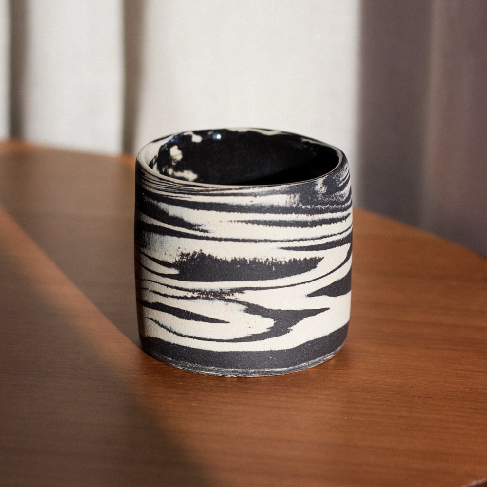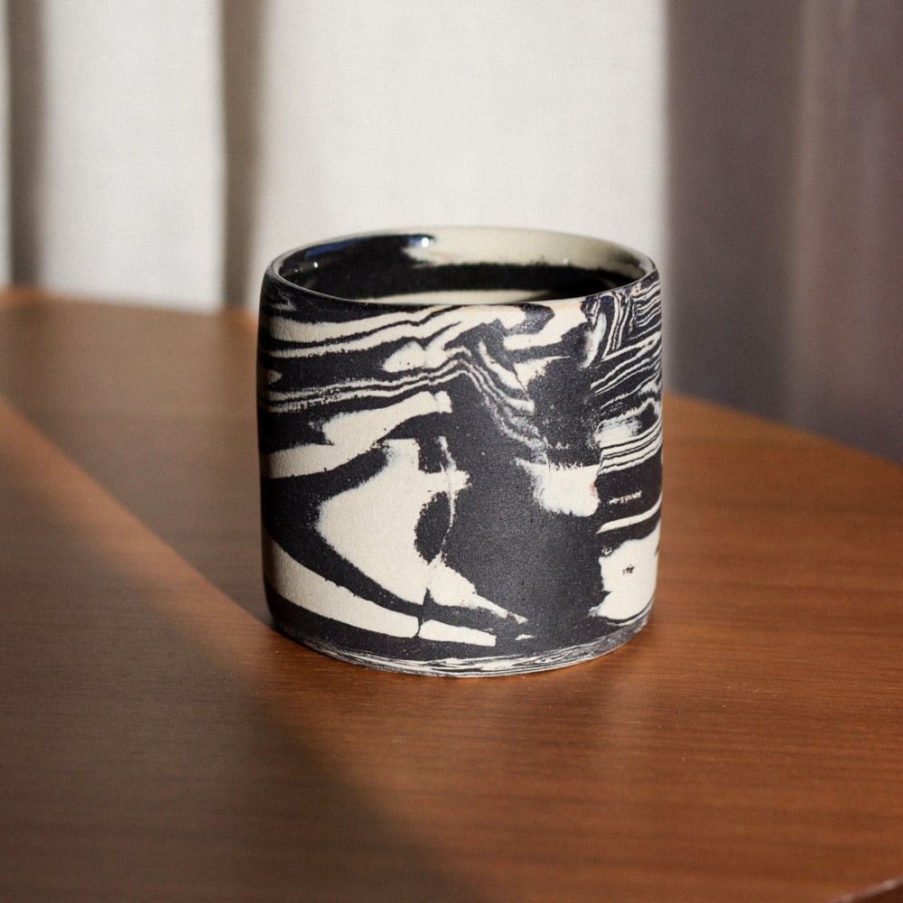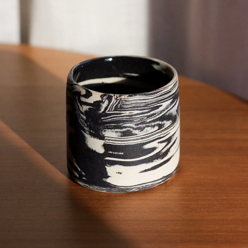 Marmi cup is entirely hand built by mixing two different stoneware clays in order to achieve a beautiful marble effect. Every surface is hand polished and glazed only on the inside. Outside of this cup is left unglazed for matte stone finish. This cup is great for café latte or espresso.