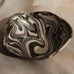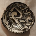 Mittlere Schale aus weißem und dunkelbraunem Steingut, nur innen glasiert, außen unglasiert.