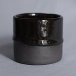 This black stoneware cup is entirely handmade using the coil and pinch technique. It is hand-painted with a thick layer of black celadon glaze, creating a beautiful dripping effect.