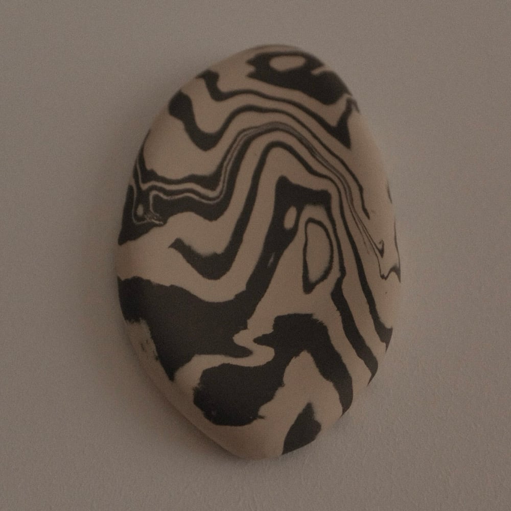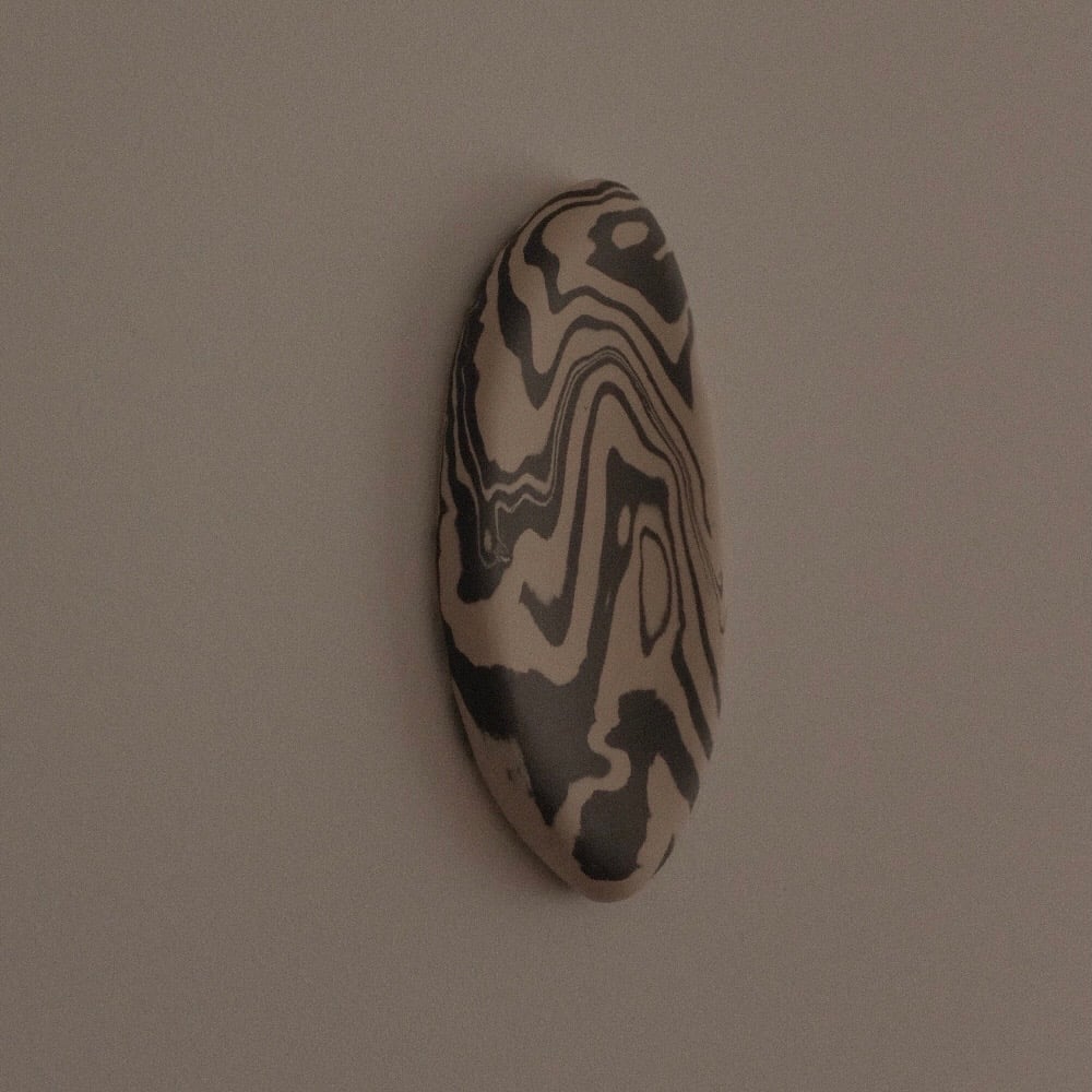 Die Wanddekoration „Pebble“ kann aufgehängt, flach auf eine Oberfläche gelegt und auf verschiedene Weise verwendet werden.