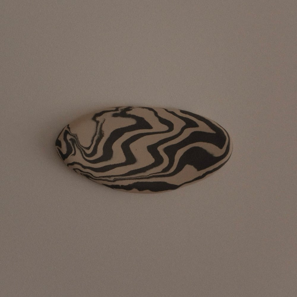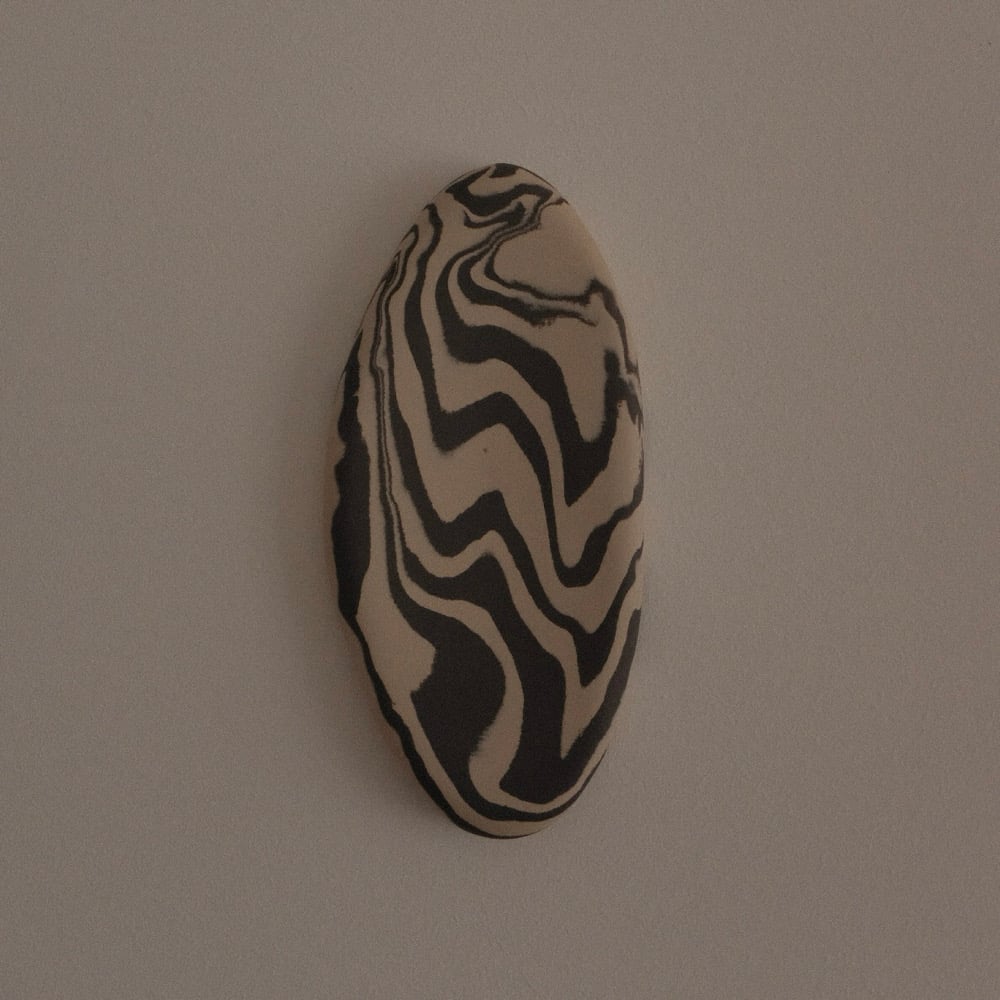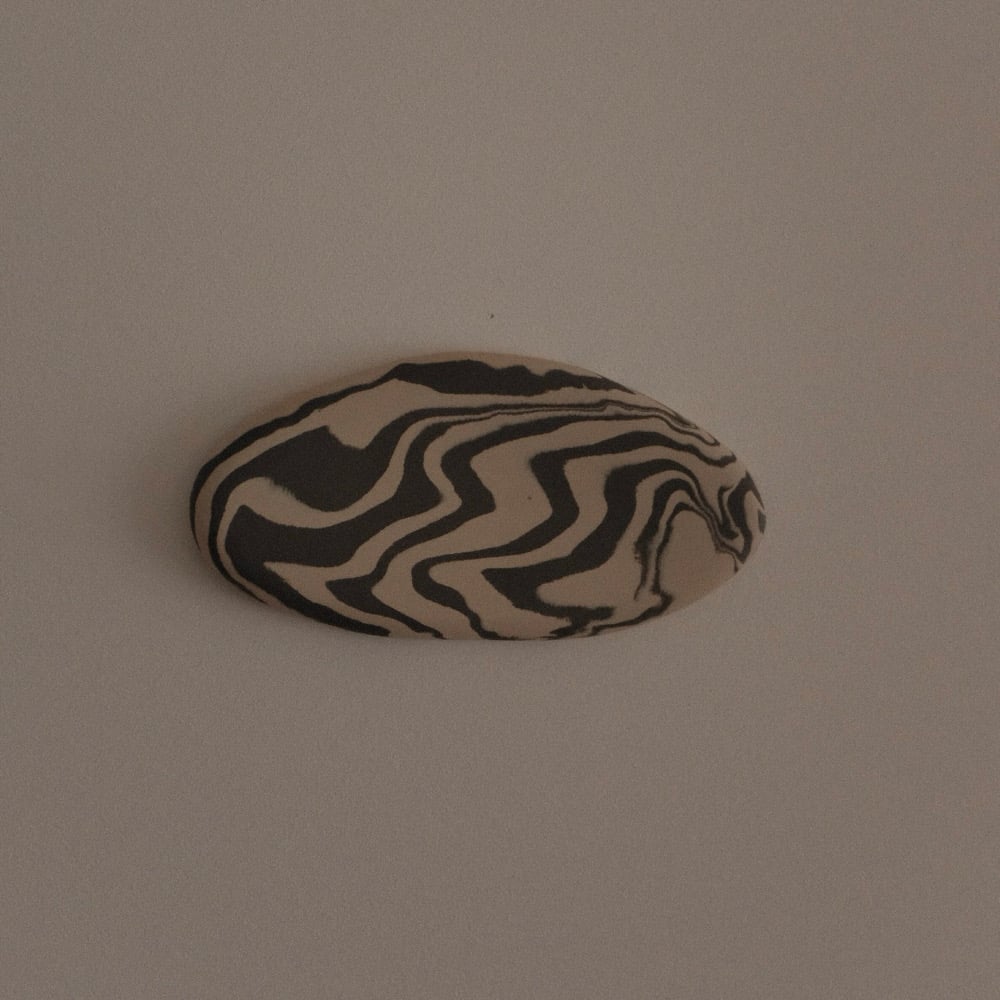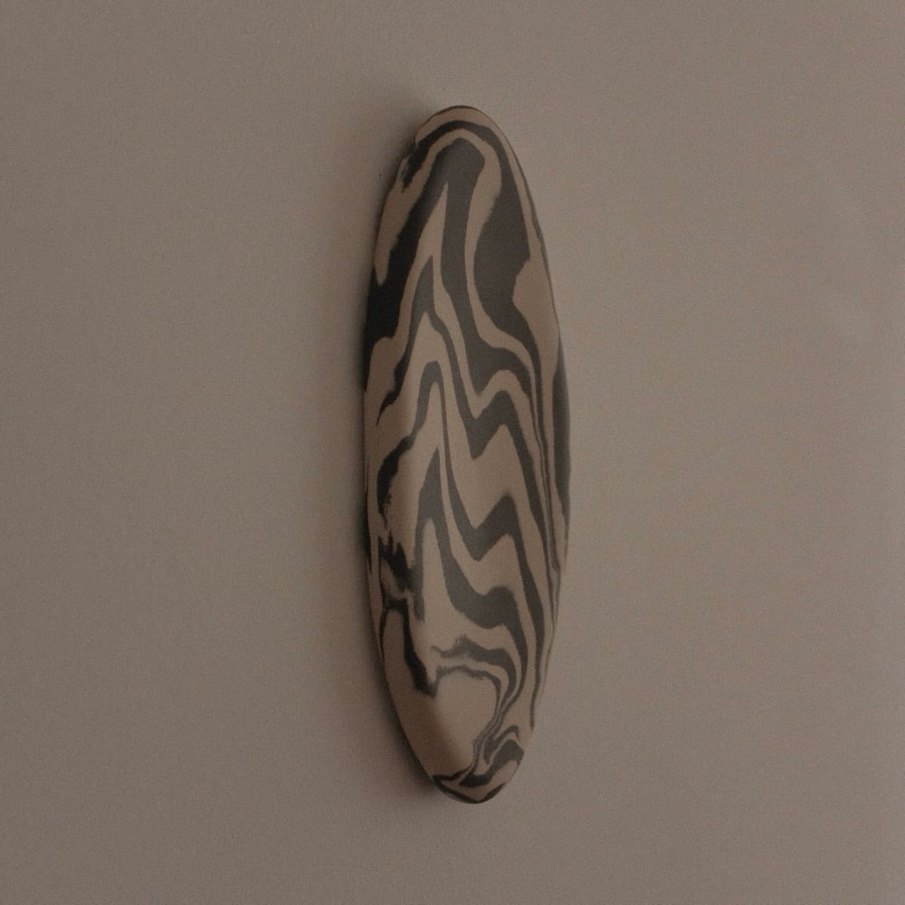 Die Wanddekoration „Pebble“ kann in vier verschiedenen Richtungen aufgehängt, aber auch flach auf eine Oberfläche gelegt und auf vielfältige Weise verwendet werden.